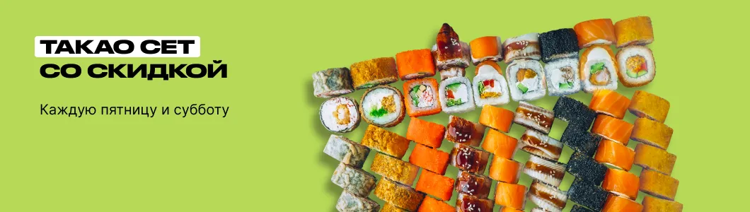 Каждую пятницу и субботу мы рады предложить вам Такао сет со скидкой, это идеальный вариант для тех, кто хочет насладиться разнообразными роллами. Не упустите шанс порадовать себя и своих близких, заказывайте Такао сет и откройте для себя мир удивительных вкусов японской кухни.