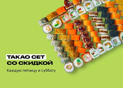 - Дополнительные скидки на Такао сет по акционной цене не распространяются, но действуют на остальные позиции в чеке.